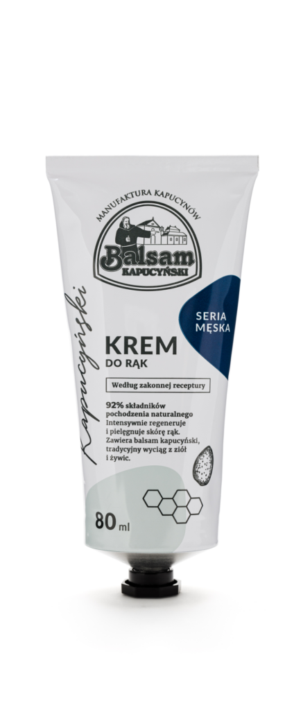 Krem kapucyński do rąk, powstał z inspiracji i troski o ochronę kobiecych dłoni. To produkt, który łączy w sobie starannie dobrane składniki, tak, aby zapewnić skórze doskonałą pielęgnację. Do jego produkcji, wykorzystaliśmy tradycyjną, zakonną recepturę Balsamu Kapucyńskiego.